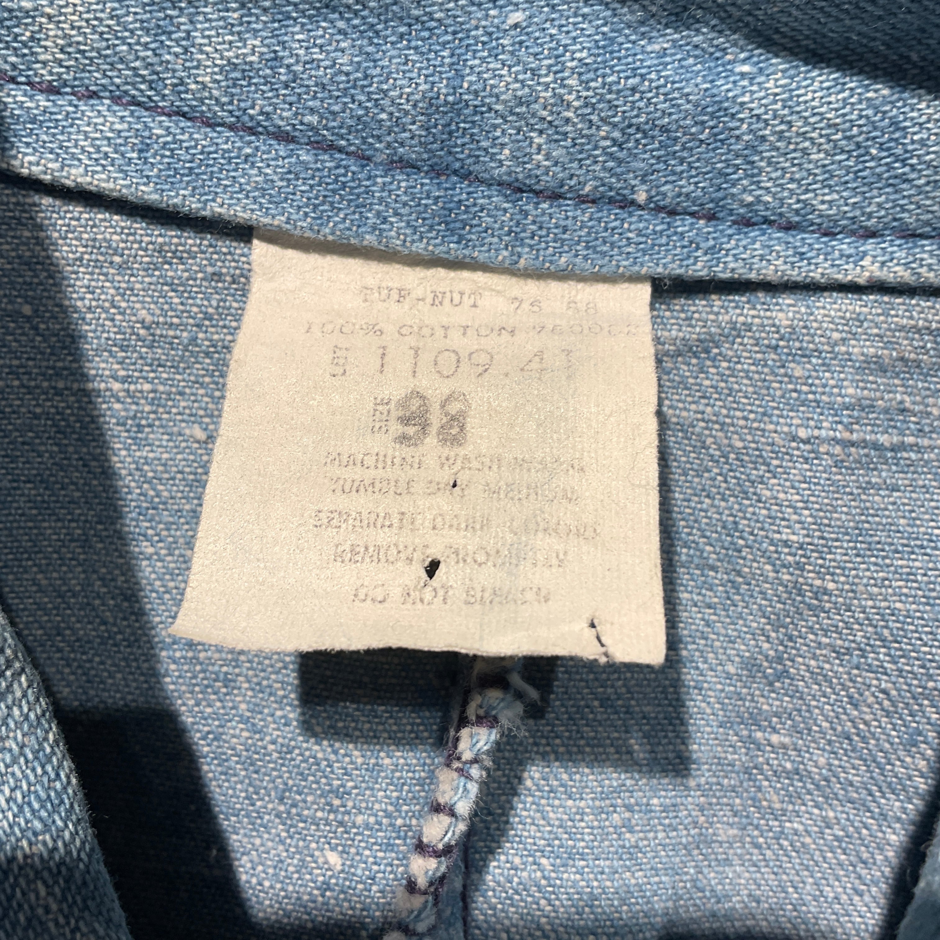 アメリカのデニムブランドのなかでもあまりメジャーではないタフナット。古着でよく見かけるキーの兄弟ブランドとして存在していたワークウエアブランド。 今は無きブランドで見かけること少なく希少価値があります。少し前はそこそこ見かけたとか。こちらはその80年代のものでスナップボタンタイプ、ウォッチポケットギリギリ付いておりスマートな印象。サイズは38。メンズのMといったところですね。